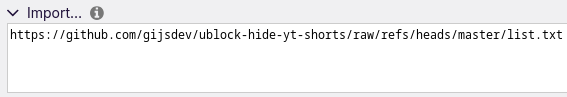 - Hide YouTube Shorts: https://raw.githubusercontent.com/gijsdev/ublock-hide-yt-shorts/refs/heads/master/list.txt